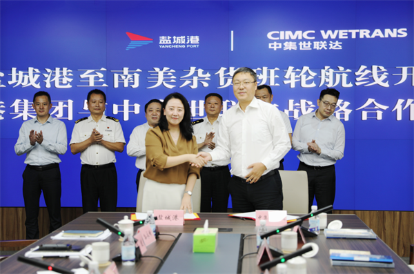 9月17日,鹽城港至南美雜貨班輪航線開航暨鹽城港集團與中集世聯達戰略合作簽約儀式成功舉行。集團黨委書記、董事長、總經理周正雄主持活動。中集世聯達長江物流副總經理劉羽,鹽城海關二級高級主辦李健,鹽城海關駐大豐港海關辦事處主任崔克勁,集團總經理助理孫永峰等參加并鑒簽。鹽城港港口公司董事長袁欣代表集團與中集世聯達長江物流公司簽訂合作協議。