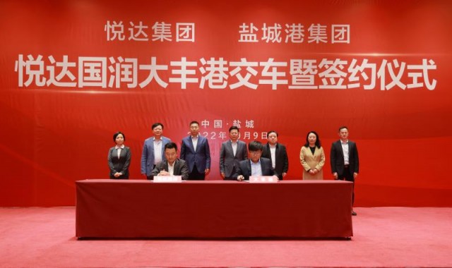 強強聯合謀發展,同心協力結碩果。10月9日,悅達國潤與大豐港牽引車交車暨自卸車簽約儀式在鹽舉行。活動現場,悅達汽車集團向鹽城港集團交付悅達國潤電動牽引車鑰匙,悅達國潤公司與大豐港集團就采購換電式自卸車事宜進行簽約。江蘇悅達集團黨委書記、董事長張乃文,鹽城港集團黨委書記、董事長周正雄出席活動。