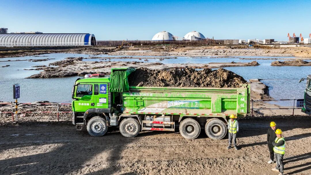 進(jìn)行港池陸上開(kāi)挖施工