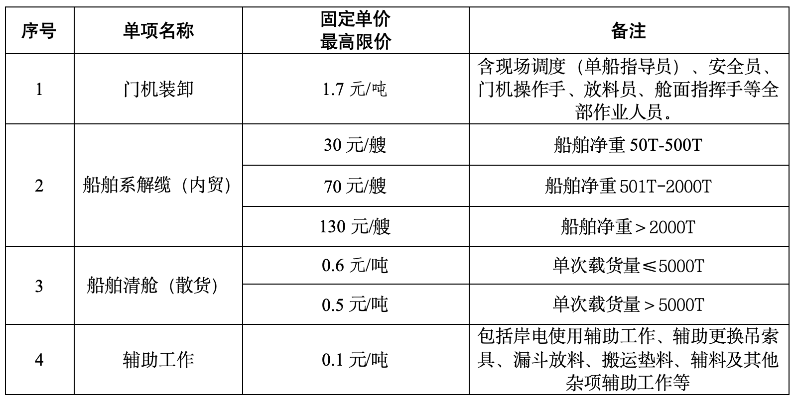 2、招標內(nèi)容:萬噸級通用碼頭4#泊位裝卸作業(yè)、船舶清艙業(yè)務外包服務包括(包括但不限于):射陽港4#通用泊位的裝卸搬運:含現(xiàn)場調(diào)度(單船指導員)、安全員、門機操作手、放料員、艙面指揮手等全部作業(yè)人員(包括招標人提供:2臺門機、2臺漏斗;投標人自備:裝載機、運輸車輛、通勤車輛等設備操作);輔助工作:岸電使用輔助工作、輔助更換吊索具、漏斗放料、搬運墊料、輔料及其它雜項輔助工作;船舶清艙:含機械、人工入艙清理(含指揮)、道口至碼頭面區(qū)域的清理工作;船舶系解纜(船舶解、系纜及其輔助工作)等,詳見招標需求。招標人保留對招標范圍進行調(diào)整的權(quán)利。