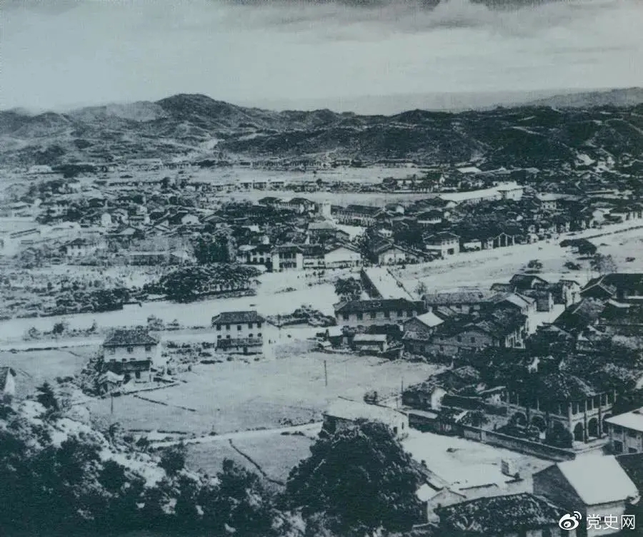 1928年4月,朱德率領(lǐng)南昌起義余部到達井岡山,與毛澤東領(lǐng)導的部隊勝利會師。圖為會師地點礱市全景。