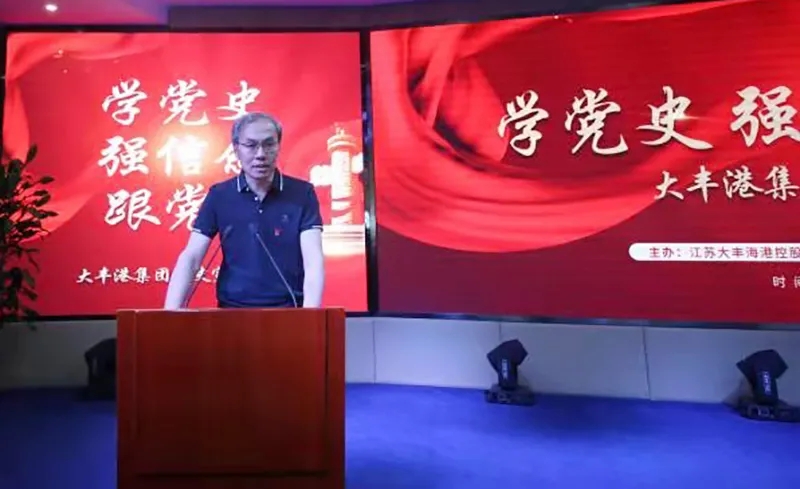 6月5日上午,大豐港區(qū)開展“學(xué)黨史、強(qiáng)信念、跟黨走”黨史宣講活動(dòng)。大豐港區(qū)黨委副書記、董事、總經(jīng)理繆存美,大豐港區(qū)領(lǐng)導(dǎo)班子全體、港區(qū)機(jī)關(guān)全體和各子公司中層副職以上干部參加活動(dòng)。