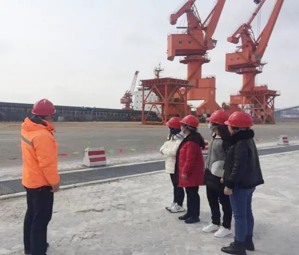 濱海港區(qū)單位女職工在生產經營部工作人員的帶領下,學習門機進行裝卸作業(yè),了解碼頭從船舶靠岸的前期準備到靠泊后的裝卸作業(yè)的全部流程。