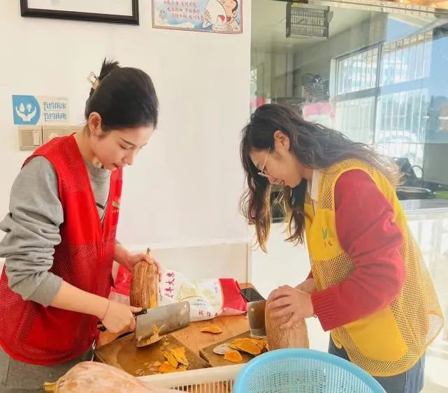 活動當天,青年志愿者們早早來到了素食館,擇菜、洗菜、切菜,分工明確,井然有序。午飯時間,有的青年志愿者負責迎賓指引,提醒老人小心臺階,有的為老人們送上熱乎乎的飯菜,熱情地為身邊每一位顧客提供細致周到的服務,以實際行動展現了“保稅先鋒”們積極向上的精神風貌。