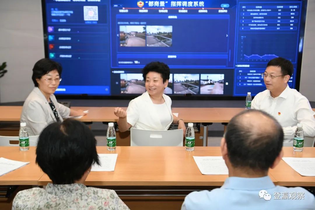 ▲黃莉新一行察看鹽都區(qū)政協(xié)“有事好商量”協(xié)商議事工作調(diào)度中心