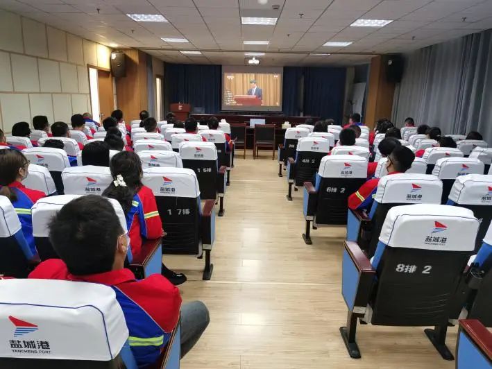 射陽(yáng)港區(qū)工作人員集中收看大會(huì)實(shí)況直播