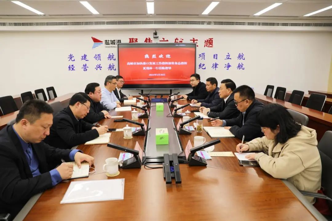 3月30日,高郵市加快港口發展工作指揮部常務總指揮夏瑞林率隊來我集團調研,就港口建設相關事宜進行調研。集團黨委書記、董事長周正雄接待夏瑞林一行。集團黨委副書記、董事、總經理陸帥,市港航事業發展中心主任徐軍,集團黨委委員、副總經理梁洪兵等參加。