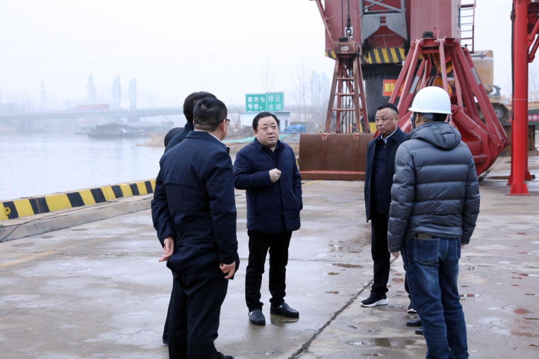 調研中,周正雄一行實地察看了宿遷高新港作業現場,詳細了解生產經營、發展規劃、泊位規模及運營管理等情況。