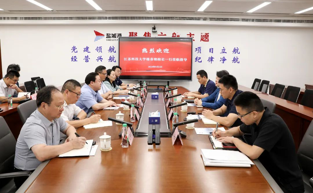 周正雄對嵇春艷一行的到來表示歡迎,對江蘇科技大學在鹽城港發展過程中給予的關心和支持表示感謝,并介紹了鹽城港相關情況。他說,由于地理環境的特殊性,鹽城港長年面臨著復雜的水文地質條件,一定程度上限制了港口生產能級的提升。面對宏觀形勢、吞吐能級、新質生產力等“發展拐點”,集團積極組織開展航道清淤、軟基處理、泥沙利用、極端天氣應對等課題研究,希望通過“揭榜掛帥”的形式,積極聯合高校及單位共同研究解決路徑,著力破除制約港口高質量發展的不利因素,進而有效降低運營維護成本,實現效益提升。希望江蘇科技大學一如既往地關心支持集團的發展,堅持“實用性”原則,共同推動課題研究與成果轉化,持續深化合作交流,攜手打造“港口科研項目升級版”,推動海洋經濟高質量發展。