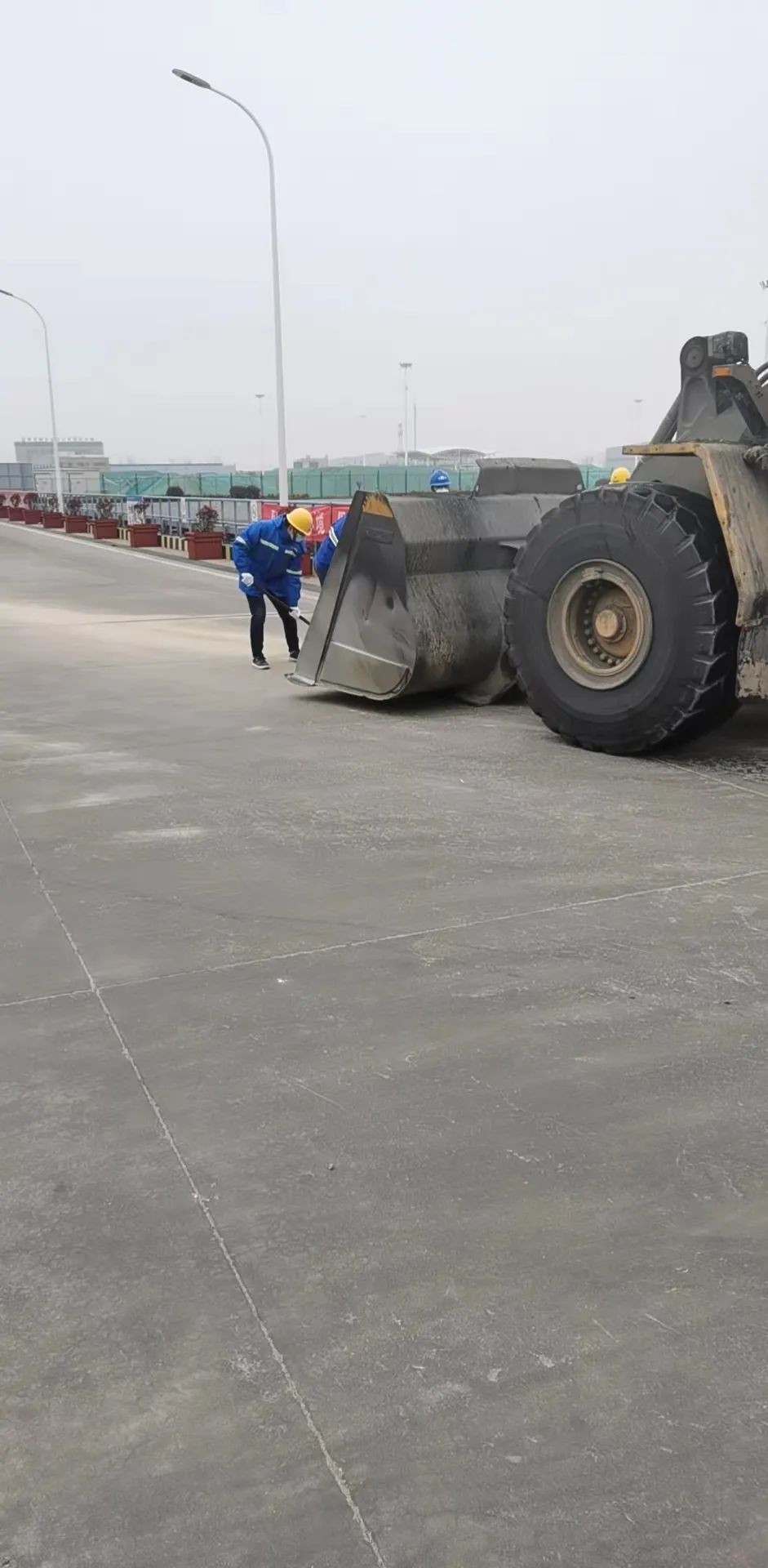 (生產部人員正在碼頭進行拋灑貨物清理)