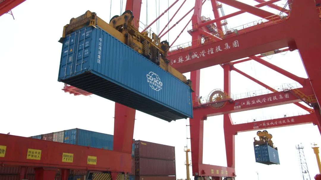 4月8日,隨著中遠海運下屬泛亞航運“鵬安盛”輪緩緩靠泊鹽城港大豐港區(qū)集裝箱碼頭,600TEU中遠海運空箱運抵鹽城港,供鹽城港腹地產(chǎn)業(yè)使用,為鹽城港集團更好服務(wù)腹地企業(yè)增添了動力。