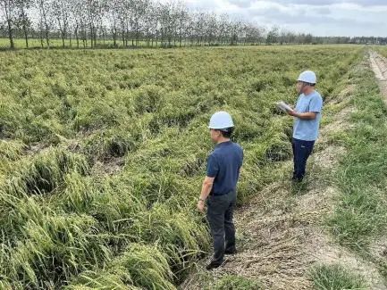 抓好受災農業生產恢復。受強風和強降雨影響,大量農田受淹、農作物倒伏(水稻、高粱、玉米等)、林木傾斜。針對受災情況,農業科技集團各轄區立即組織搶險隊伍,配合種植戶、養殖戶開展生產恢復工作,對積水的農田及時開溝排水,對倒伏農作物及時進行扶正及管護,對傾斜樹木及時扶正固定樹體。與此同時,加強農業技術指導服務,圍繞農作物種植、畜禽養殖、水產養殖等重點領域發布病蟲害防治技術指南,確保災后不發生二次傷害。
