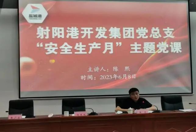 為切實發(fā)揮各級黨組織和廣大黨員在安全生產(chǎn)中的戰(zhàn)斗堡壘作用和先鋒模范作用,近日,射陽港區(qū)黨總支根據(jù)近年來習近平總書記關(guān)于安全生產(chǎn)的重要論述,結(jié)合港區(qū)安全風險點,為全體員工和駐港單位上了一堂安全生產(chǎn)主題黨課,要求與會人員強化防范措施,在狠抓工作落實的同時,嚴格統(tǒng)籌發(fā)展和安全。