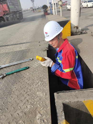 他停留在一臺地磅姥爺旁邊 偶爾會觸碰撫摸