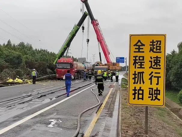 一輛油罐車在G228路段發生側翻