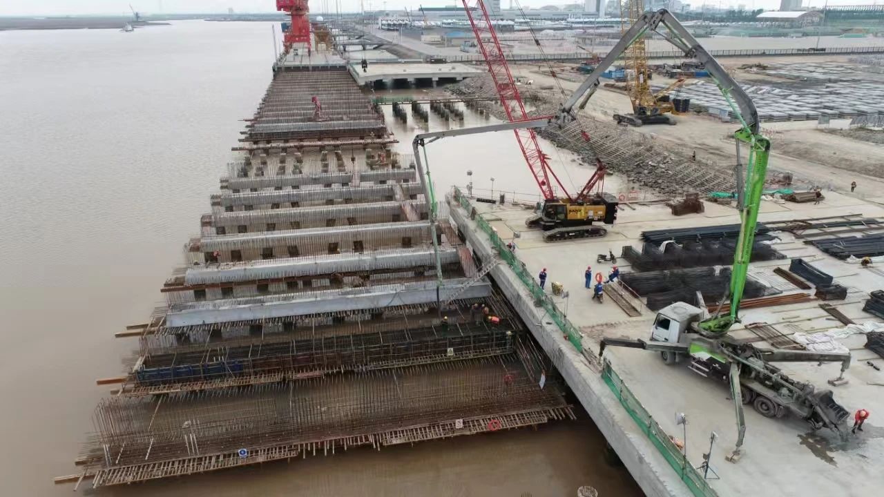 強(qiáng)勁增長背后,是專業(yè)化碼頭集群的加速成型。依托得天獨厚的“風(fēng)光”資源,鹽城港射陽港區(qū)針對風(fēng)電設(shè)備運輸?shù)奶厥庑枨螅鲃犹峒墧U(kuò)能,正加速推進(jìn)四期工程建設(shè),為外貿(mào)出口按下“加速鍵”?!案脑旌笠龢?qū)挾仍黾?0%,可滿足150米級超長設(shè)備運輸需求。”項目負(fù)責(zé)人楊曉平介紹,根據(jù)建設(shè)計劃,碼頭水工結(jié)構(gòu)預(yù)計于今年年底竣工,項目全面運營后,年運輸能力可達(dá)250套整機(jī)和400套葉片,將充分保障港區(qū)風(fēng)電產(chǎn)業(yè)的長遠(yuǎn)發(fā)展需求。