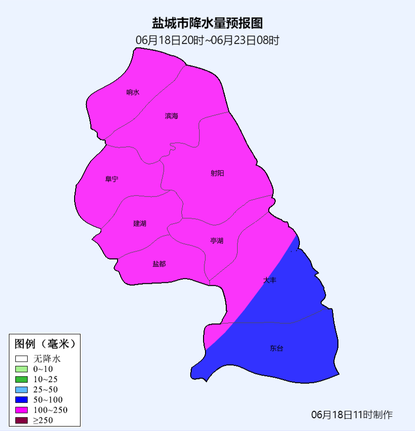 6月18日20時-23日08時全市降雨量預報圖