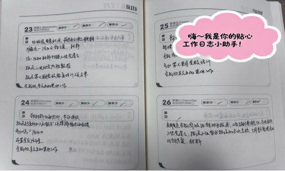 我是那本寫得滿滿當(dāng)當(dāng)?shù)墓ぷ魅罩尽D惴催^同事的本子,或許只看到工整的字跡,記著“上午核對(duì)資料”“下午對(duì)接碼頭”,但我每一頁(yè)的記錄都是實(shí)用的“工作指南”。大家總愛翻閱我的舊頁(yè),依照去年記下的經(jīng)驗(yàn)要點(diǎn),提前做好相關(guān)臺(tái)賬梳理和工作籌備。這些藏在字縫里的經(jīng)驗(yàn),可比空喊“提效率”要實(shí)在得多。