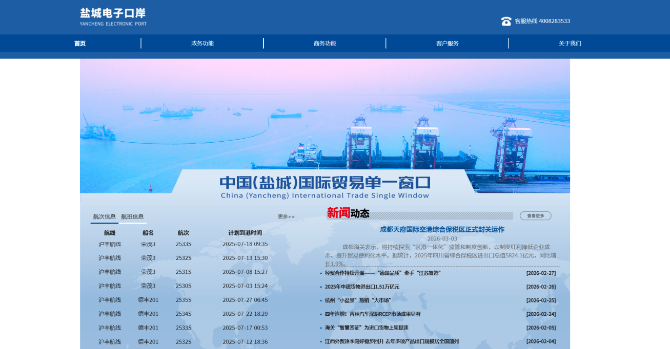 ?平臺以提升企業滿意度為核心,通過線上門戶與線下走訪相結合的方式開展精準服務,與51家企業建立長效聯絡機制。同時,通過對接鹽城港集裝箱TOS系統,實現船舶靠離泊、作業進度、集裝箱動態等信息實時共享,讓物流狀態透明可視,徹底改變傳統口岸“信息孤島”局面,顯著提升企業辦事便利度。