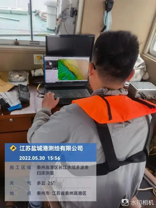 近日,江蘇鹽城港測繪公司受江蘇誠泰測繪科技公司委托,對泰州醫藥高新區(高港區)長江水下地形測量項目多波束分段進行水下掃測。