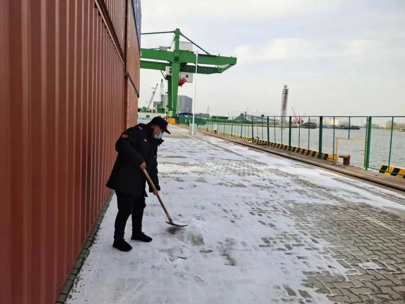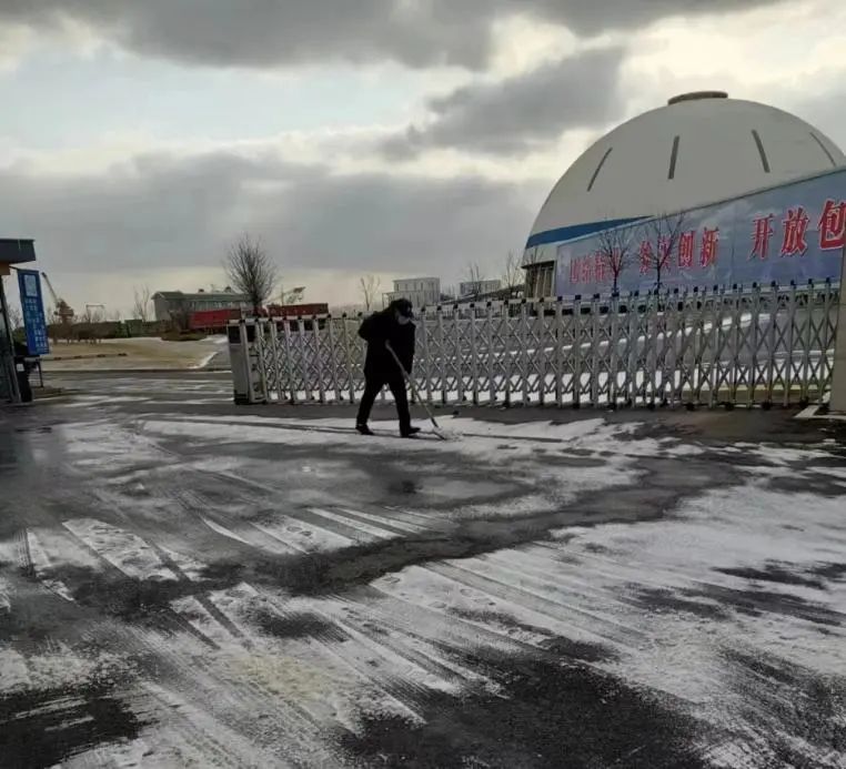 面對大雪這場嚴峻考驗,實業集團物業公司全體員工堅守崗位,嚴陣以待。在鹽城港各個港區內,各項目組負責人深入各物業服務點坐陣指揮,物業工作人員分工明確,高效清掃港區的積雪,確保路面無積雪結冰、安全通暢。