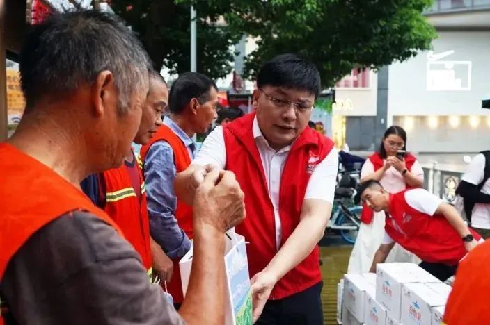 暖心驛站內歡聲笑語,氣氛熱烈。來自寶龍社區的代表、志愿者與港灣建設集團的黨員志愿者們齊聚一堂,一幕幕溫馨的畫面不斷上演。他們不僅為勞動者們分發防暑降溫日用品,還耐心講解安全小常識,確保每一位勞動者都能感受到來自社區和企業的關懷。