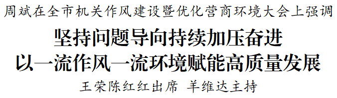 周斌指出,黨的十八大以來,以習(xí)近平同志為核心的黨中央高度重視干部作風(fēng)和營(yíng)商環(huán)境建設(shè),反復(fù)強(qiáng)調(diào)作風(fēng)建設(shè)永遠(yuǎn)在路上,只有進(jìn)行時(shí)沒有完成時(shí);深刻指出“好的營(yíng)商環(huán)境就像陽光、水和空氣,須臾不能缺少”。全市上下要切實(shí)增強(qiáng)責(zé)任感、緊迫感,深刻認(rèn)識(shí)轉(zhuǎn)作風(fēng)、優(yōu)環(huán)境是扛起新使命的關(guān)鍵之舉,是競(jìng)逐新賽道的必由之路,是展現(xiàn)新作為的應(yīng)有之義,必須把機(jī)關(guān)作風(fēng)建設(shè)和優(yōu)化營(yíng)商環(huán)境擺在更加突出位置,對(duì)照“軍令狀”,落實(shí)“施工圖”,畫好“工筆畫”,全力攻堅(jiān)突破、爭(zhēng)先進(jìn)位,嚴(yán)格督查考核,以永遠(yuǎn)在路上的恒心,一步一個(gè)腳印矢志鍛造一流作風(fēng)、營(yíng)造一流環(huán)境、創(chuàng)造一流業(yè)績(jī)。